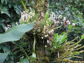 A tropical wonderland of palms, ferns, bromeliads, fountains, sculptures, rocks, ironwork gates, and pergolas, with the delightful scent of flowers filling the air.