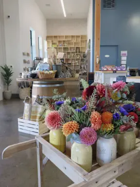 Scout Coffee, a friendly, bustling place, and Lassens Natural Foods Market, plus many other food places nearby.