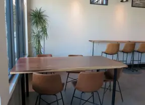 Coffee shop and cafes, plus a dedicated bike path that runs for 1.1 km from Dinosaur Caves Park to the elementary school.