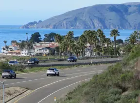 A pretty beachside town, with a wooden pier and wide windy beach with perfect views of Morro Rock, and colorful houses with gardens, backed by gently-sloping hills.