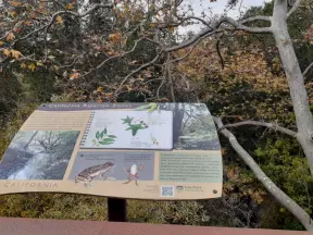 Popular 1.7 mile loop walking path with some shade and wooden boardwalk beside the river.