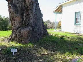 Lovely path beside a eucalyptus forest, on both sides of the creek, with workout stations, in a residential neighborhood. You can walk two miles total. Also called San Luis Ranch.