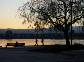 People come after work to walk around the lake, under the trees, enjoying the birds, turtles, and squirrels.