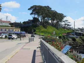 Walkway on the cliffs, in front of the resorts, that's bliss at sunset and in springtime when there are flowers galore. Take stairs down to a sheltered cove with tide pools.