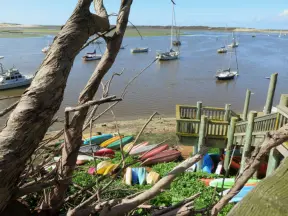 A tiny stretch of boardwalk in a beautiful setting on the estuary, with a coffee shop with a sunny patio facing the water, and cute cafes where you can relax.