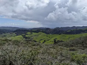 Eucalyptus and cactus forest, then amazing views over the high school toward the morros! After, a difficult, steep, rocky climb with gorgeous views of mountains and distant sea. Also called Bowden Ranch Hike.