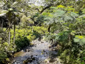 At Iao Valley State Park, the upper path takes you to views of Iao Needle, and the lower path takes you to a magical area by the stream with boulders and large tropical trees. Reservation required.