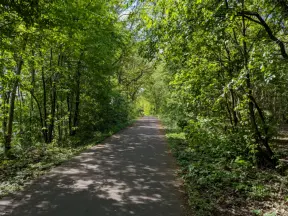 2.4 mile paved, intermittently shady greenway with varied sights!