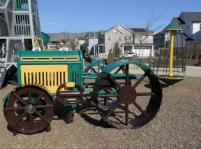 A colorful, fun playground with huge twisty slide, three-level climby, tractor, baby swings, basketball court, and giant lawn. Also called San Luis Ranch.