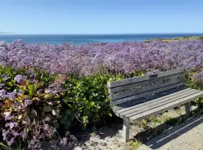 Walkway on the cliffs, in front of the resorts, that's bliss at sunset and in springtime when there are flowers galore. Take stairs down to a sheltered cove with tide pools.