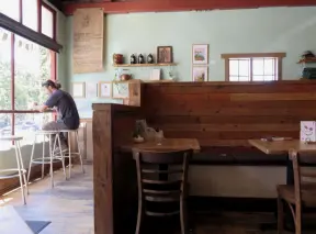 Coffee shop and cafes, plus a dedicated bike path that runs for 1.1 km from Dinosaur Caves Park to the elementary school.