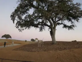 A wonderful exhibit on acres of undulating hills, with a field of lights resembling a flower field, and metal sculptures making patterns of light.
