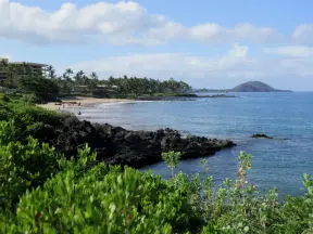 A lovely beach for to watch the sunset or have a swim. It is backed by a pricey condo resort, and is at the northernmost end of the Wailea Beach Path.