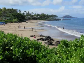 A lovely beach for to watch the sunset or have a swim. It is backed by a pricey condo resort, and is at the northernmost end of the Wailea Beach Path.