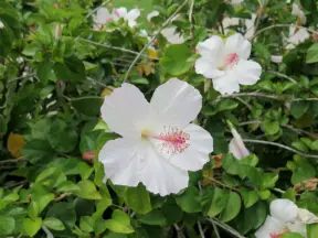 It's blissful to walk past hibiscus flowers, bougainvillea, coconut trees, tall hedges, and mansions, down to the sea.