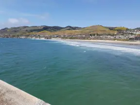 A pretty beachside town, with a wooden pier and wide windy beach with perfect views of Morro Rock, and colorful houses with gardens, backed by gently-sloping hills.