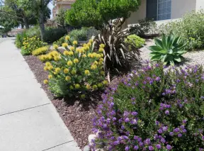 A peaceful 3-mile walk through oaky forest, past lush landscaping and a park with a historic adobe house, and among a neighborhood with gardens filled with flowers.