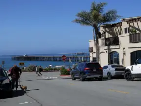 A pretty beachside town, with a wooden pier and wide windy beach with perfect views of Morro Rock, and colorful houses with gardens, backed by gently-sloping hills.