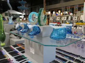 Adorable spot along Highway 1, with creamery food truck, lunch food truck, amazing glassworks store, pottery store, leather store, and peaceful Irish chapel.