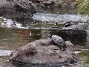 Incredibly lush and beautiful grounds, with animals in happy enclosures built around natural bodies of water.