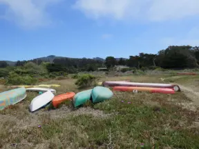 A short 500m dirt path on the Cuesta Inlet, with colorful kayaks.