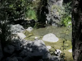 A very short hike in to huge boulders, bright trees, waterfalls, and a clear-water swimming hole. There is a longer hike, if you take the right fork.