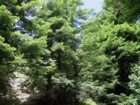 Hiking trails with flowers in the spring and deep sinkholes with observation decks.