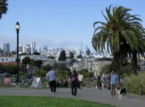 Pretty hilltop park with views of San Francisco's skyline, and the famous Painted Ladies.