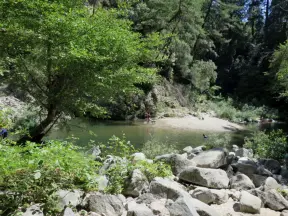 A gorgeous hike through redwoods to a pool in the river, with smooth white rocks to sit on.