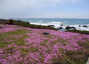 One-mile stunning walk with sweeping views of the coastline, sea stacks of all shapes, pelicans, coves, glistening water, flowers hanging off cliff faces.