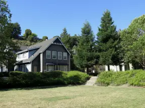 Lovely neighborhood walk past sweet houses and gardens, near fragrant hills with eucalyptus and wildflowers, plus a playground and lawn.