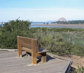 A boardwalk over stunted California Live Oaks with wonderful views of Morro Rock and the bay below.