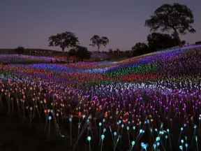 A wonderful exhibit on acres of undulating hills, with a field of lights resembling a flower field, and metal sculptures making patterns of light.
