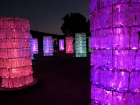 A wonderful exhibit on acres of undulating hills, with a field of lights resembling a flower field, and metal sculptures making patterns of light.