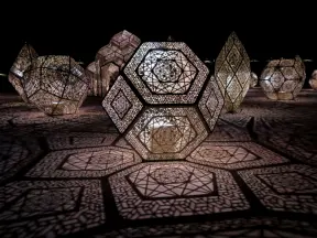 A wonderful exhibit on acres of undulating hills, with a field of lights resembling a flower field, and metal sculptures making patterns of light.