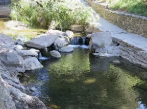 A very short hike in to huge boulders, bright trees, waterfalls, and a clear-water swimming hole. There is a longer hike, if you take the right fork.