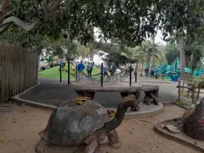 A park of exquisite beauty, with flowering trees and a picnic lawn fronting a pond full of turtles and koi.