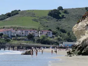 A pretty beachside town, with a wooden pier and wide windy beach with perfect views of Morro Rock, and colorful houses with gardens, backed by gently-sloping hills.