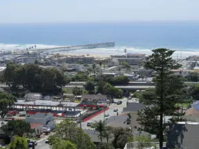 A pretty beachside town, with a wooden pier and wide windy beach with perfect views of Morro Rock, and colorful houses with gardens, backed by gently-sloping hills.