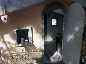 Garden in a sunny, sheltered spot, with cottage with turret under redwood trees, Buddhist gazebo, goats, and flowers galore! Seasonal pumpkins and Christmas market!