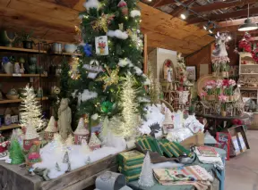Garden in a sunny, sheltered spot, with cottage with turret under redwood trees, Buddhist gazebo, goats, and flowers galore! Seasonal pumpkins and Christmas market!