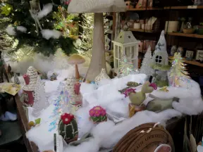Garden in a sunny, sheltered spot, with cottage with turret under redwood trees, Buddhist gazebo, goats, and flowers galore! Seasonal pumpkins and Christmas market!