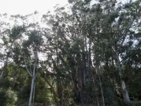 Shady walk among eucalyptus trees. Peaceful! Plus a cute playground tucked in a corner at the end.