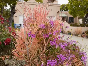 Adorable houses with gardens full of flowers, and streets leading down to lookout points over the ocean.