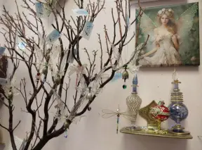 Garden in a sunny, sheltered spot, with cottage with turret under redwood trees, Buddhist gazebo, goats, and flowers galore! Seasonal pumpkins and Christmas market!