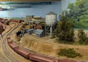 Cute yellow building, a historic train depot, only open 2 hours a week and during model railroad days in April and October.