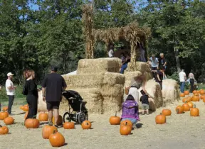 A nice way to get in the harvest spirit- giant pumpkins of many colors, corn maze, hay rides, farm animals, hay to throw, and display garden.
