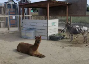 Coffee shop, food court, ice cream and pastry shops, brewery, gift shop and market, outdoor public spaces with fire pit and tables and selfie spots galore, farm with donkeys, goats, and alpaca! Also called San Luis Ranch.