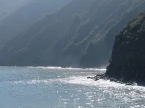 Romantic cove with rock pools, shade spots under the cliffs, calm water, and warm weather. Accessible by kayak or lighthouse tour bus.