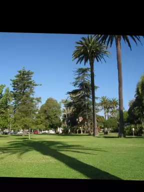 Small, gorgeous park with old trees, tropical plants, flowers, roses, and a pond with koi and turtles.